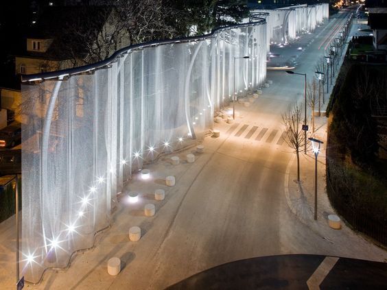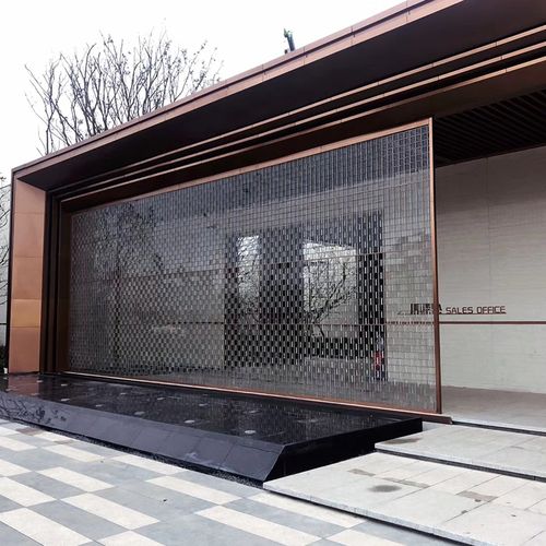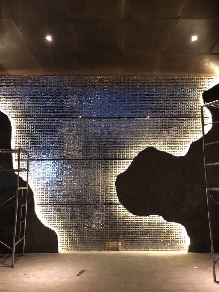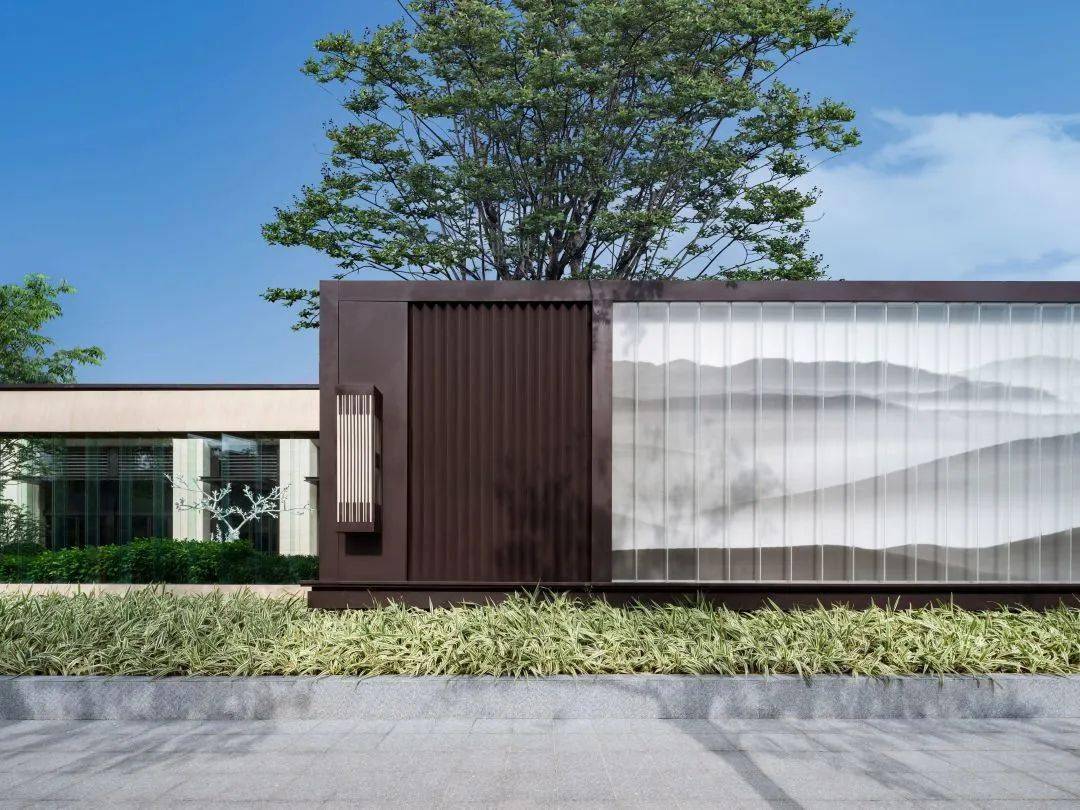景墙:现代风格建筑物出入口、大厅等处一般有景墙,有水景墙、石景墙、格栅图文景墙等,作为建筑物亮点景观供人观赏。